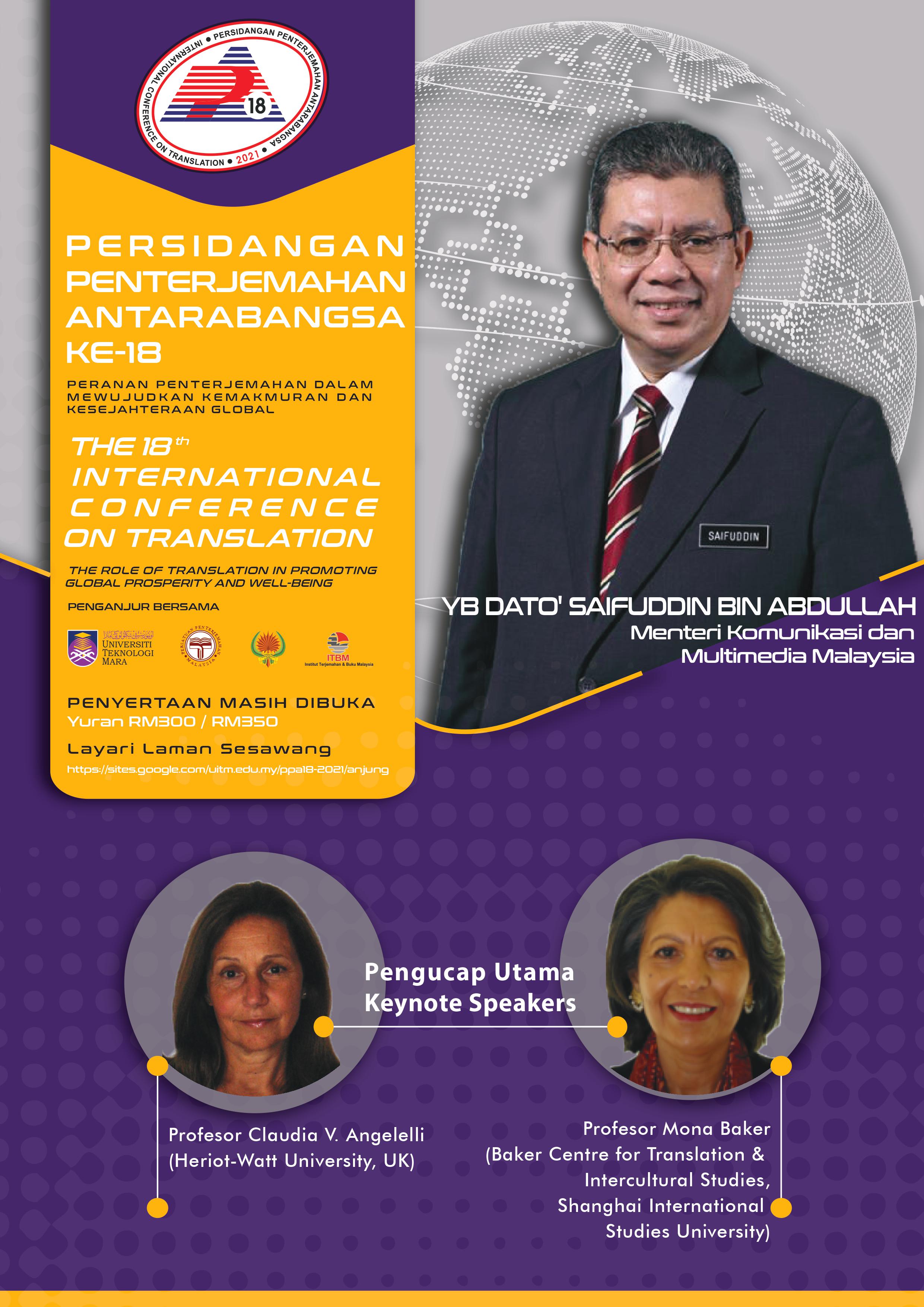 The International Conference on Translation (ICT) is an annual event organized by the Malaysian Translators Association (MTA) to bring together translation experts, researchers, and practitioners from around the world.